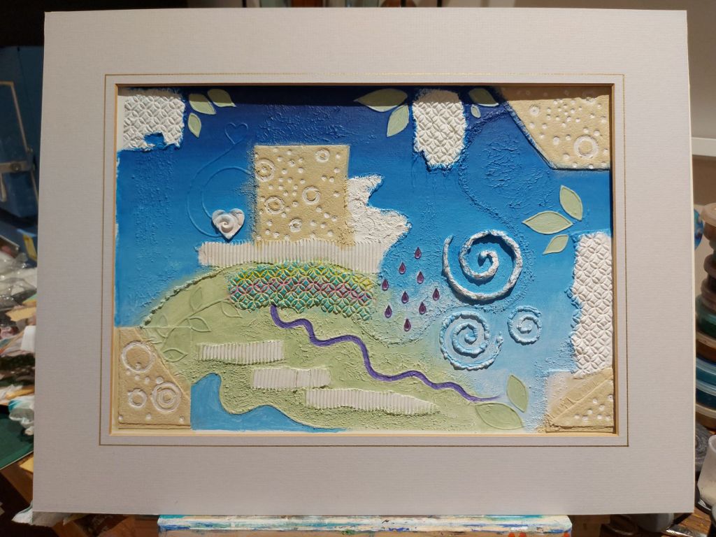 It turns out old cake boards make great canvases! I just need to find something to put on the back so it can hang.