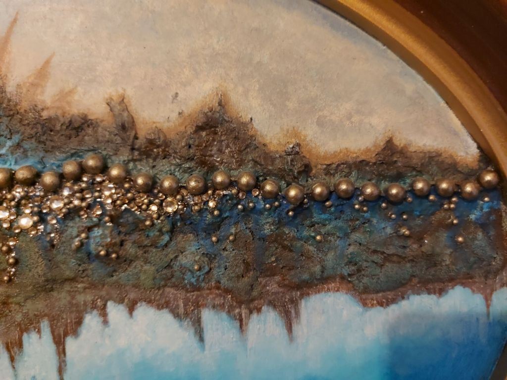 Anyway here is the painting so far. It still has a long way to go and I’m really not sure whether I like the spiral or not!