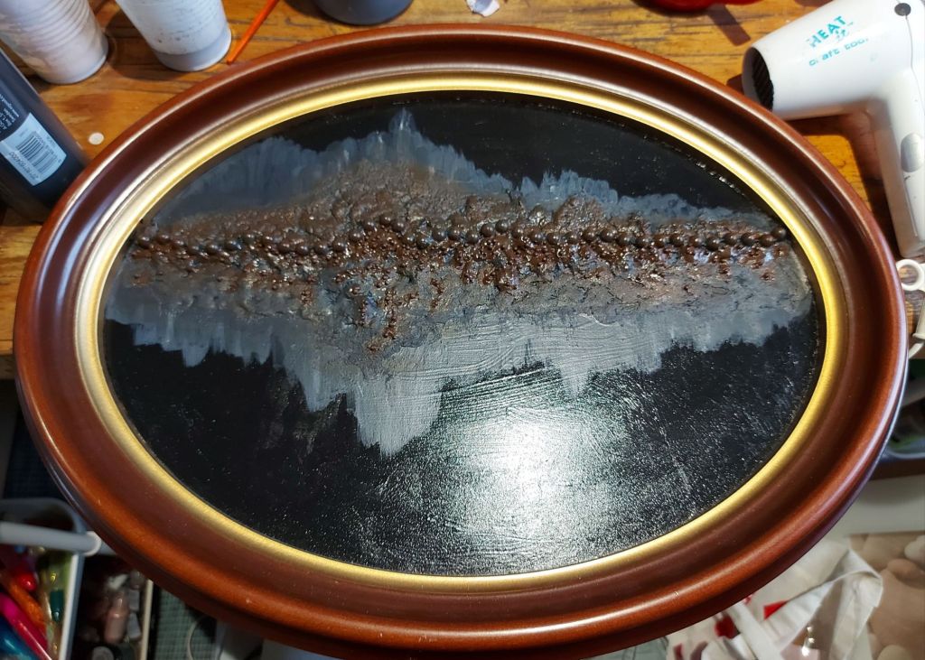 It turns out old cake boards make great canvases! I just need to find something to put on the back so it can hang.